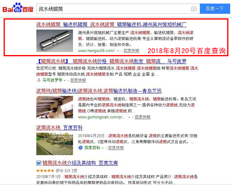 流水線輥筒 百度(PC)自然排名第1名